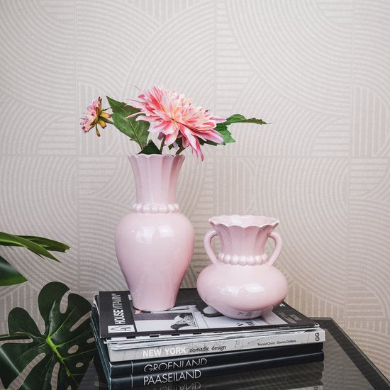 Housevitamin Vaas-Kruik Vaasje met Parelhals-Aardewerk - Licht Roze- 14x14x15cm