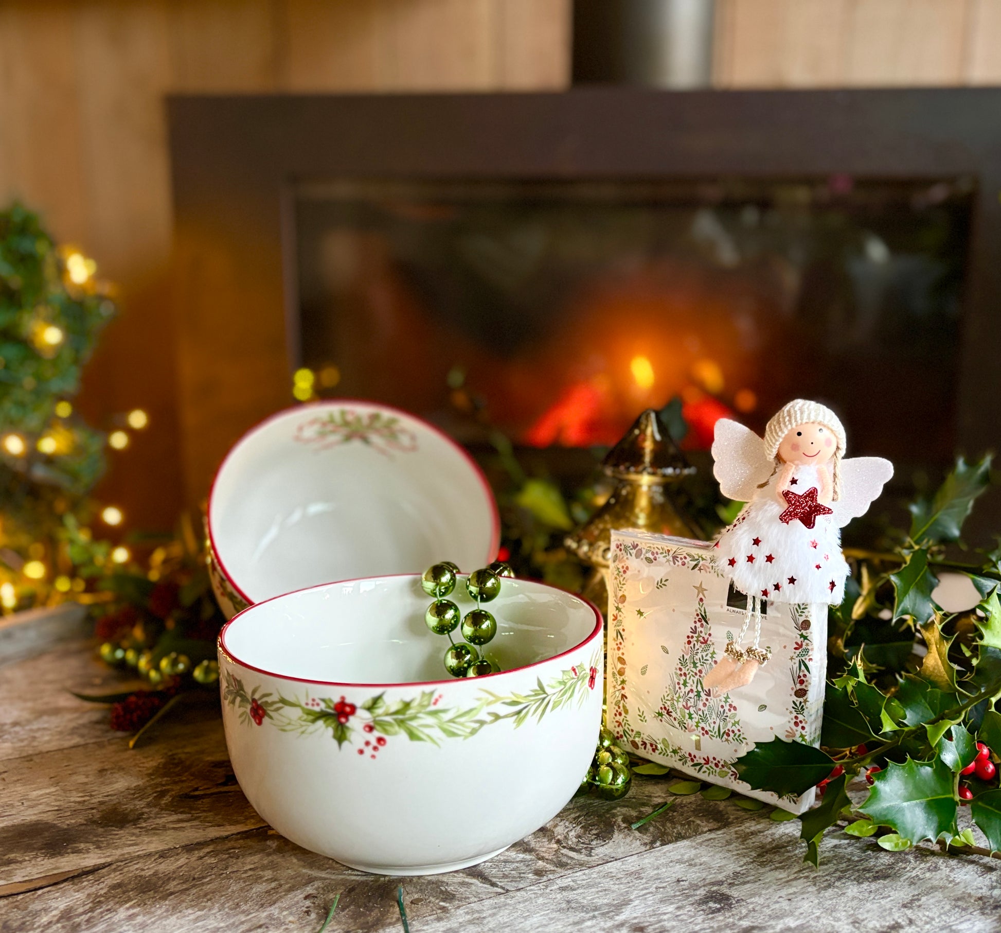 Dit mooie aardewerken bord is goed te combineren met de grotere kerstborden (22*22*2cm) en de servetjes.